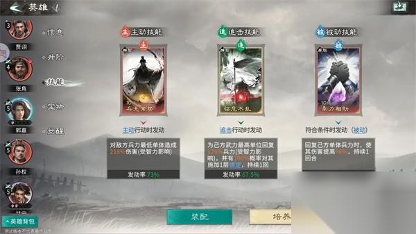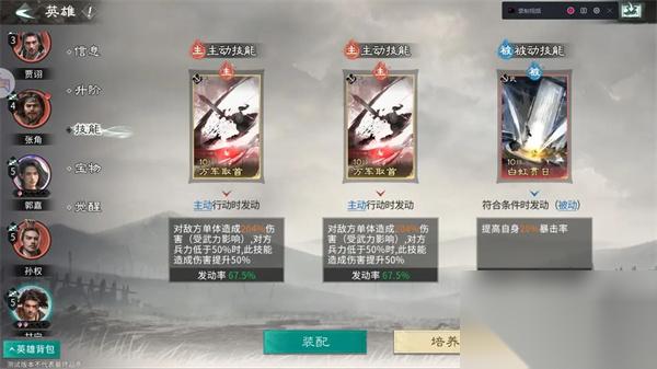 主动技能:推荐携带万军取首,技能本身倍率不低,对上敌方残血兵力还能提高技能伤害,有着不错的收割效果。