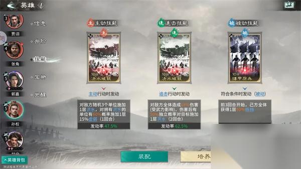 主动技能:推荐携带兵无常势,有时候对面减伤太足甘宁未秒杀对方,郭嘉携带上兵无常势就能及时收割敌方残血单位。