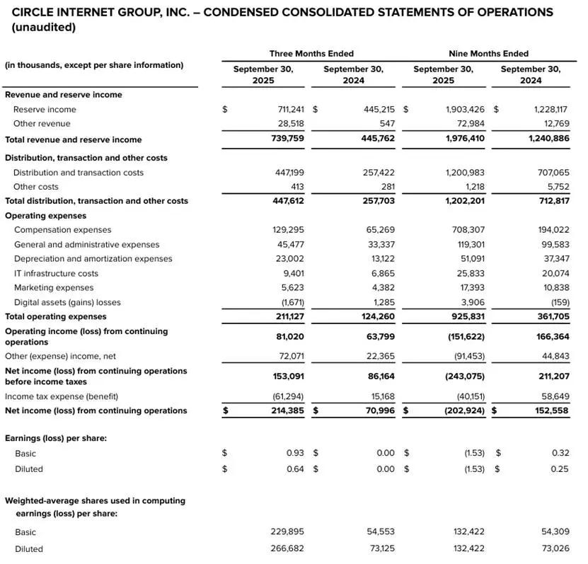 拆解 Circle 三季度财报:净利润达 2.14 亿美元,而股价较高点下跌逾 70%