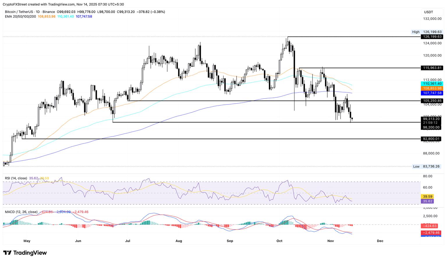 如果比特币价格跌破 98,200 美元,则可能测试 4 月 28 日的低点 92,800 美元。