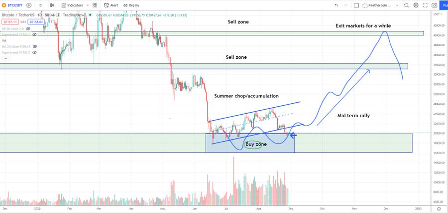 比特币在近期触及高点后跌至六个月低点,加密货币分析机构 Income Sharks 重新审视了 2022 年低于 2 万美元的买入区域图表。