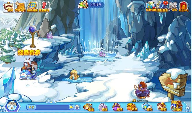 4、洛克王国枫雪镇也有冰原瀑布场景画面。