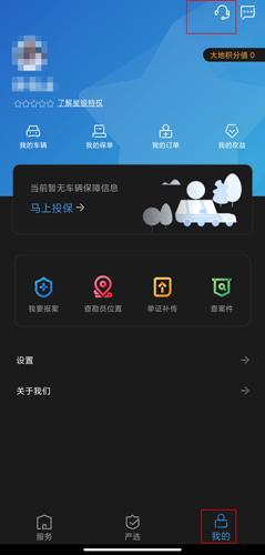 3、在我的页面中点击右上角的客服按钮;