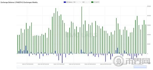 长短手抛售规模及中心交易所BTC存量变化(周)