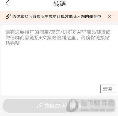 2、然后再在”我的“个人信息界面中选择“转链”功能,将刚才复制的订单转换成链接分享给好友就可以了。
