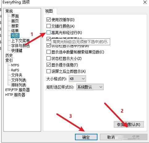 Everything怎么设置高亮光标经过行