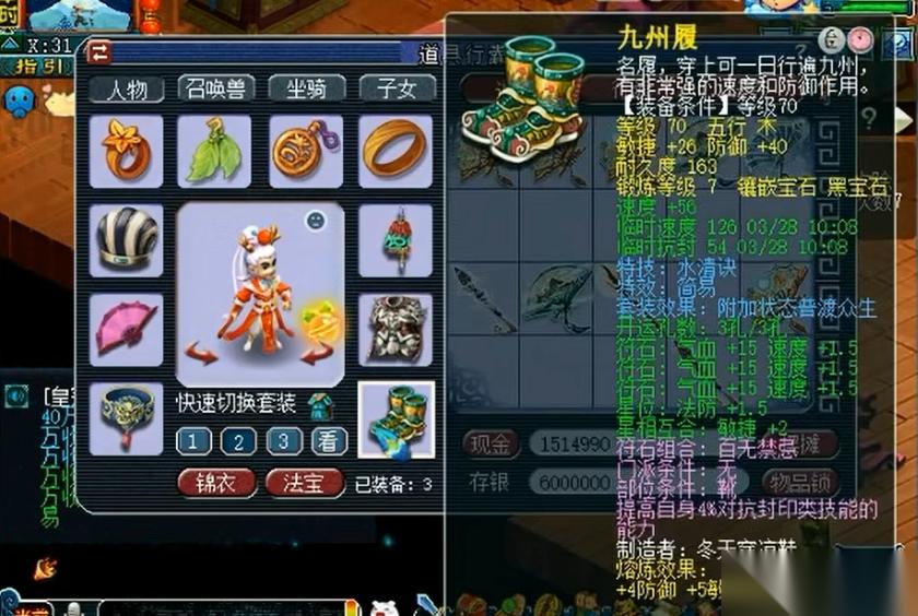 最后提醒下各位,力五庄的符石组合千万别忽略,烟雨飘摇能直接加等级×1的伤害,性价比超高。装备开孔尽量选头盔和腰带这种便宜部位,省钱又实用。宝宝搭配方面,高速血宠是必备的,能及时拉人解封,攻宠选高连击高偷袭的宝宝清场效率最高。