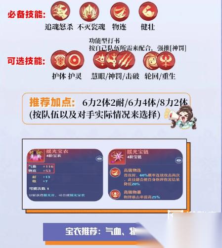 1、核心技能:不灭瓷魂(提升生存能力)、追魂怒杀(增加追击伤害)、高级物连(提升连击概率)、高级物爆(提升暴击率)、高级修罗(提升物攻)、高级乘胜(击杀后追加攻击)、高级毒系亲和(增强毒系伤害)。