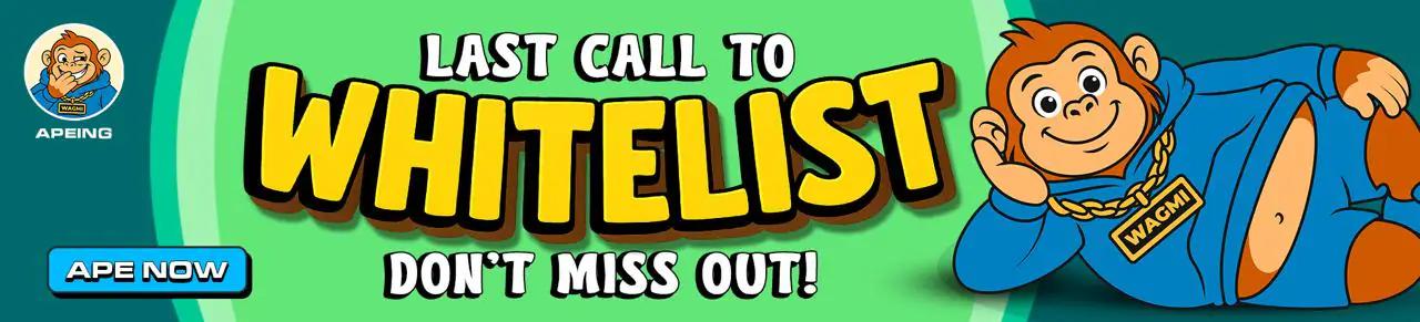 Apeing 的白名单现已正式开放,提供最早、最具成本效益的参与方式。随着配额减少和关注度上升,这一机会不会持续太久。任何希望尽早布局,抢占先机,成为下一个有望突破 1 美元的加密货币的投资者,现在都是最佳时机。