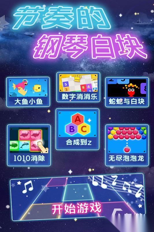 《节奏的钢琴白块》尤其针对不同的琴键位置,全部都设置出了毫无相似的音色以及视觉效果,当我们双指触摸琴键,奏响音乐的同时,整个屏幕中出现的音符色彩让人眼花纷乱,情歌、 Hip up游戏设计的音乐曲库,堪称奢华,而且更精妙的是,每一次音乐风格的转换,对我们手指的操控能力都将是一次大考。