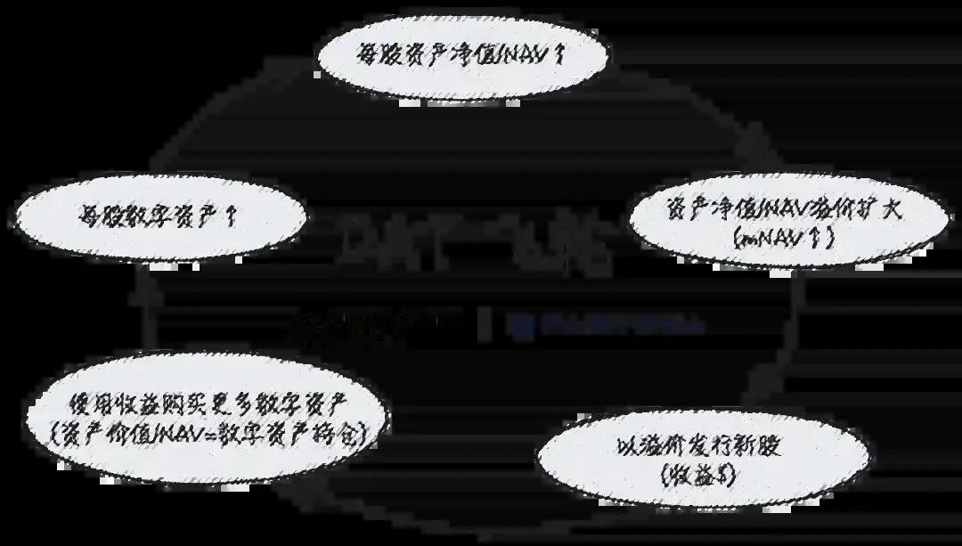 许多公司和机构通过 PIPE (Private Investment in Public Equity,私募股权公开投资 ) 参与 DAT 发行,其投资逻辑基于下图所示的「正向飞轮」: