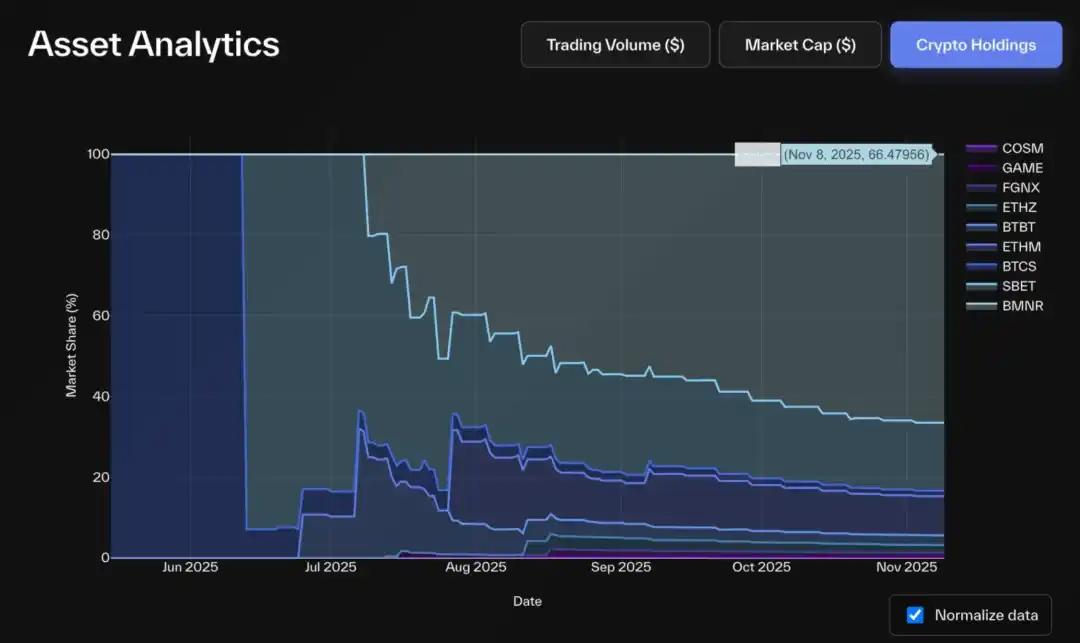 • 资产供给占比 %:DAT 持有代币占总供给量比例,反映其在底层生态的系统性影响。