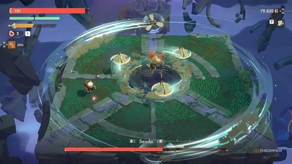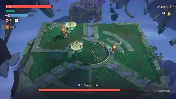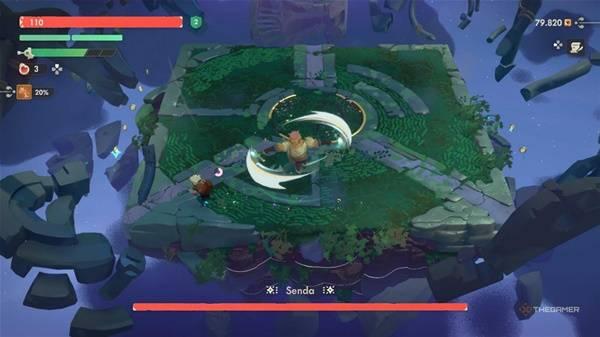 当你看到森达移动到竞技场中央并制造气流时,请远离他:触碰他会受到伤害,他还会发射一连串弹幕。移动到竞技场的一角,向左或向右移动。