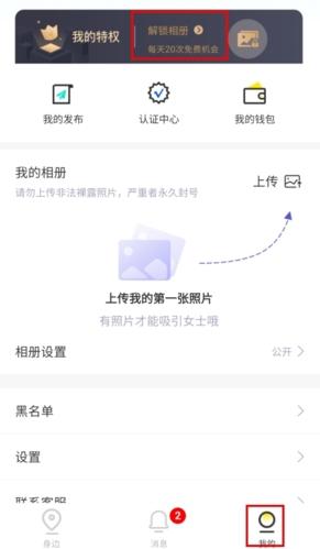 1、在我的页面中点击特权按钮;